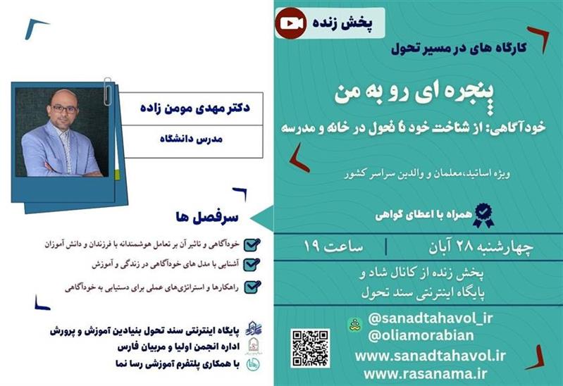 بدین وسیله به اطلاع می رساند، دبیرخانه کشوری آموزش خانواده اقدام به برگزاری وبینار با عنوان پنجره ای رو به من نموده است.