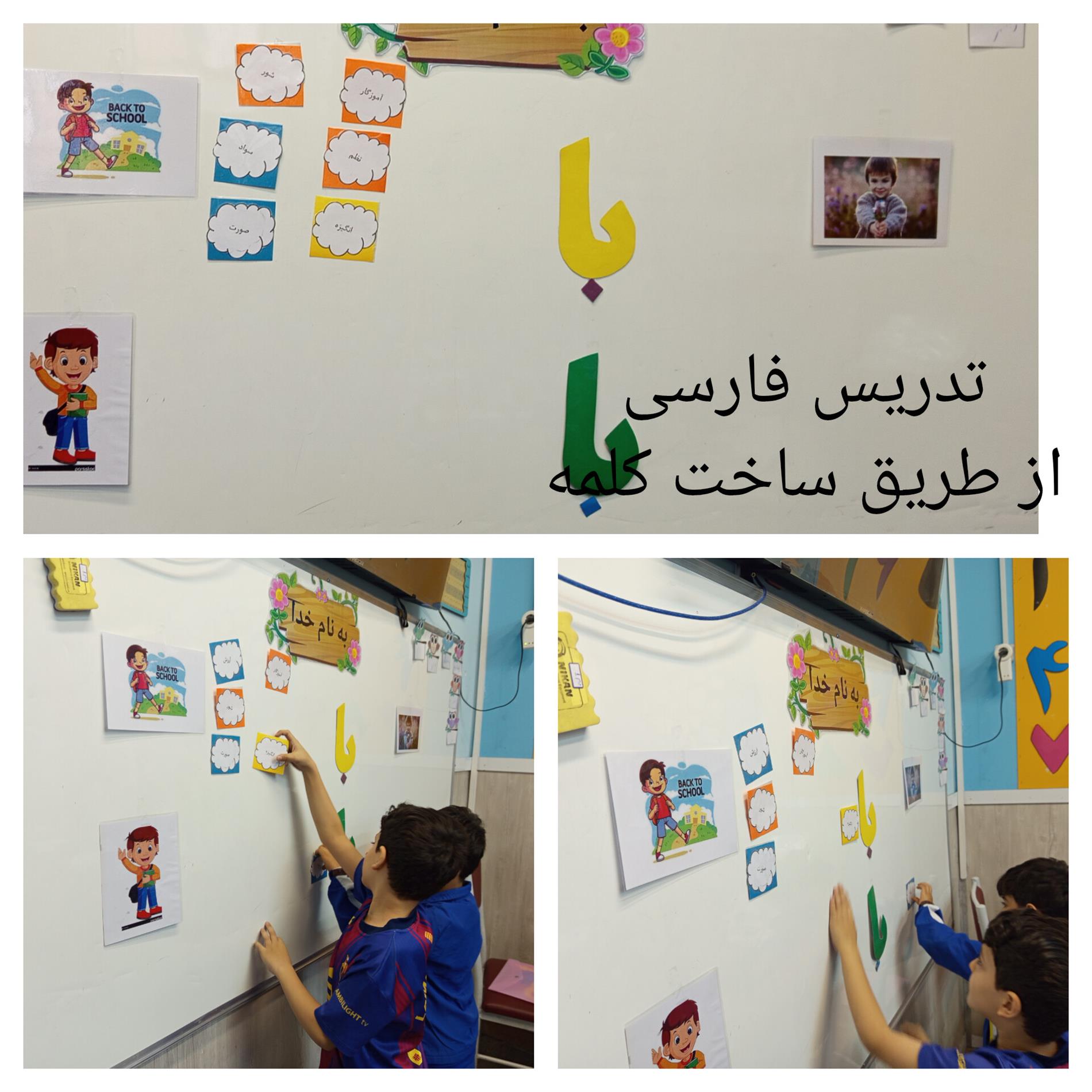 تدریس شیرین فارسی و ساخت کلمات همراه با بازی با کلمات کنار گل پسر های نازنینم