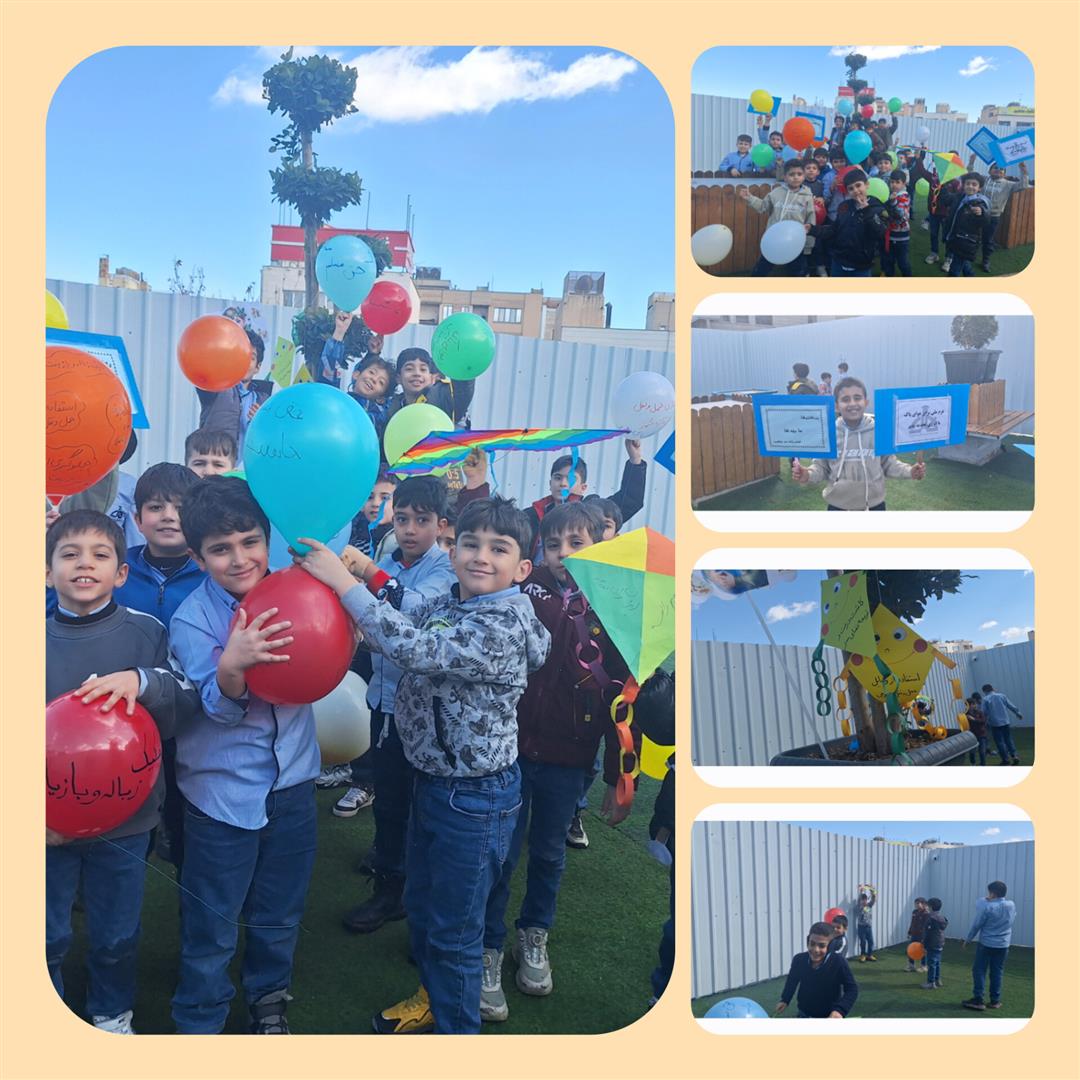 گل پسران عزیزم با باد کنکهایی 🎈🎈🎈🎈که در دست داشتند وشعارهای که در موردحفظ محیط زیست روی آنها نوشته بودند.
