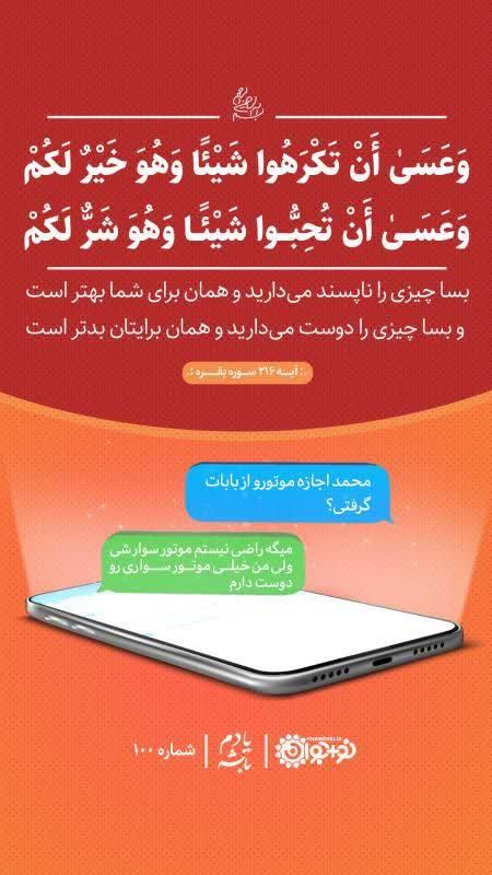 ( بسا چیزی را ناپسند می دارید و همان برای شما بهتر است و بسا چیزی را دوست می دارید و همان برایتان بدتر است ) " سوره بقره آیه 216 "