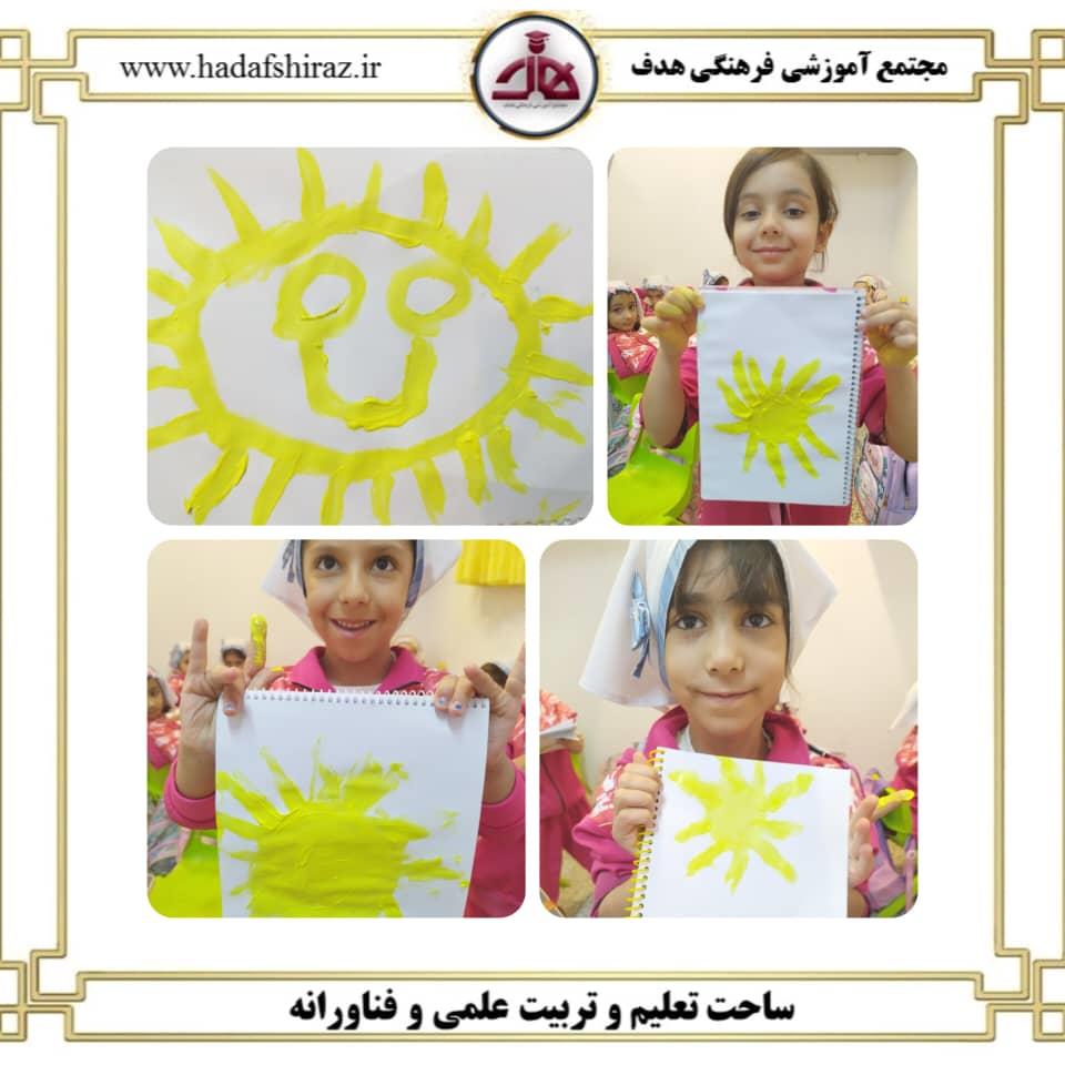 نقاشی یک خورشید با رنگ انگشتی جهت تثبیت مفهوم عدد یک