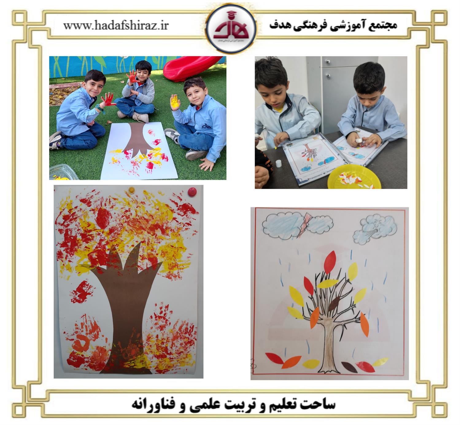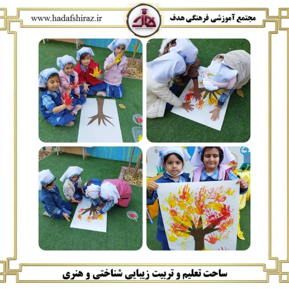 کاردستی گروهی چاپ درخت پاییزی با اثر دست و گواش
