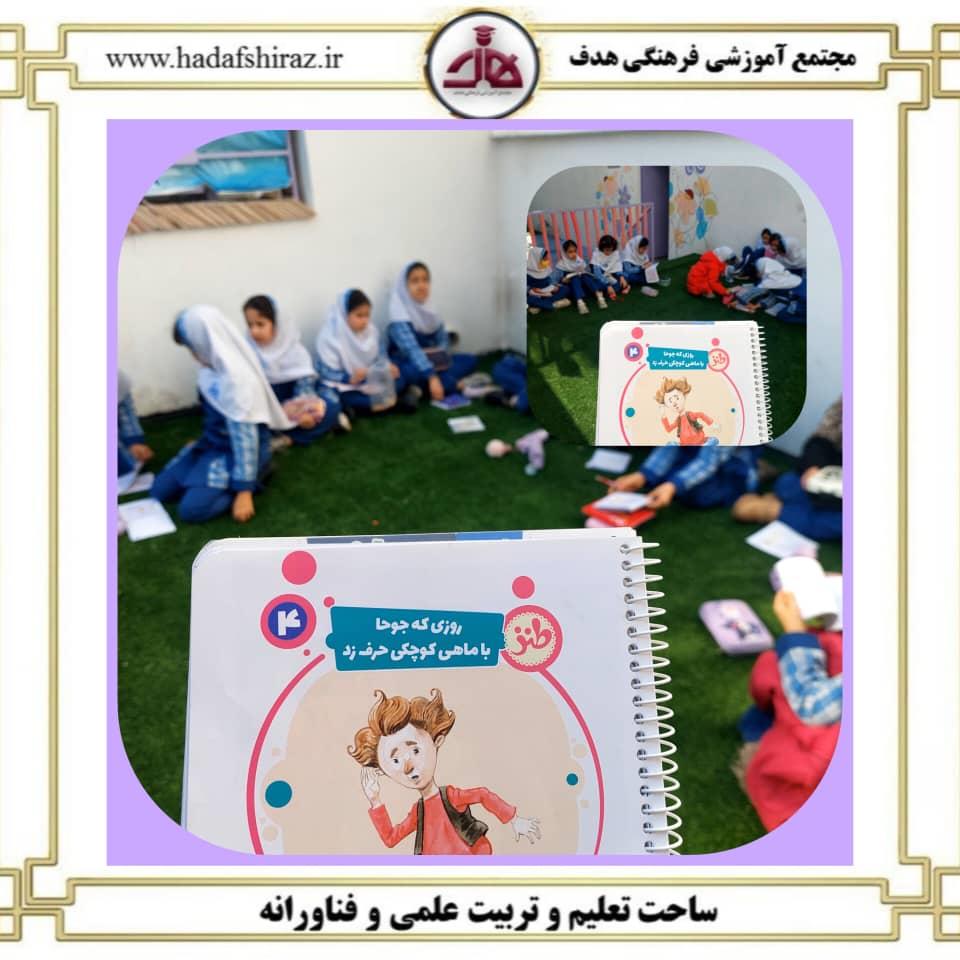 کلاس سوم قصه روزی که جوحا خواست مرده زنده کند . فعالیت قصه خوانی و تشکیل حلقه گفتگوی فبکی در "حیاط" مدرسه باهدف تفکر ارتباطی بامحیط ( تفکر اکولوژیک)