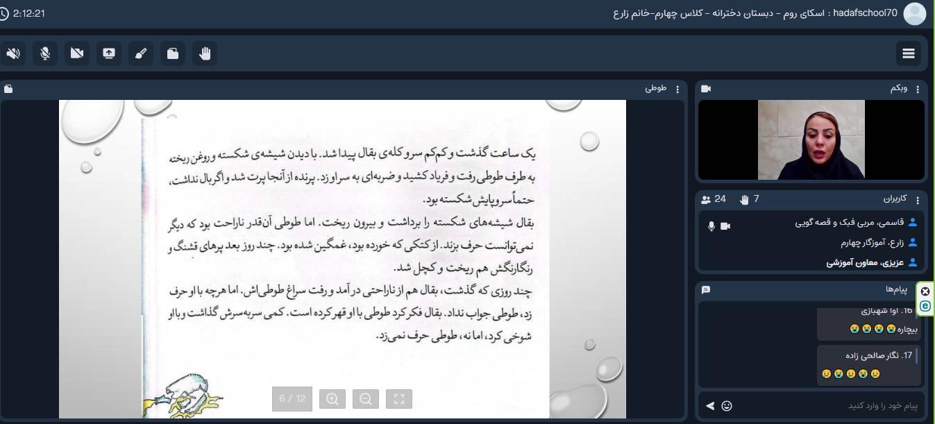 قصه خوانی طوطی و بازرگان : کلاس چهارم (تشکیل حلقه گفتگو)