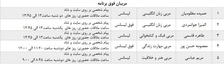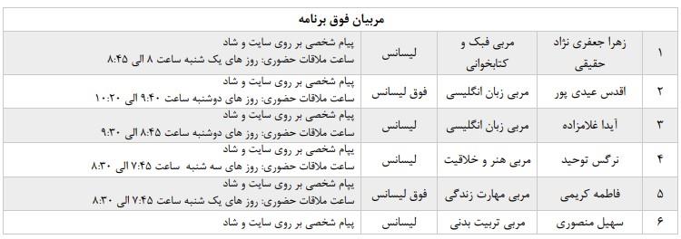 راه های ارتباطی با مربیان فوق برنامه دبستان دخترانه و کودکستان