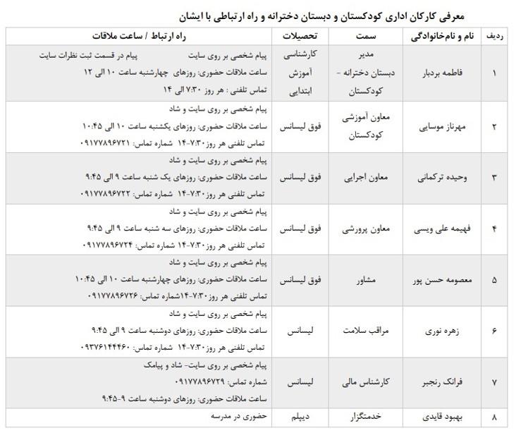 راه های ارتباطی با کارکنان اداری دبستان دخترانه و کودکستان