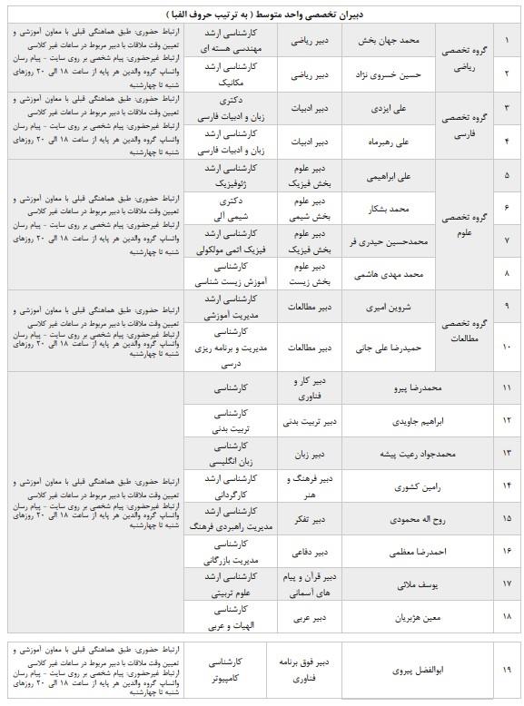 راه های ارتباطی با دبیران متوسطه پسرانه