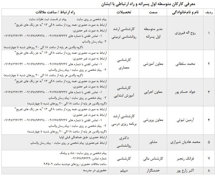راه های ارتباطی با کارکنان اداری متوسطه پسرانه